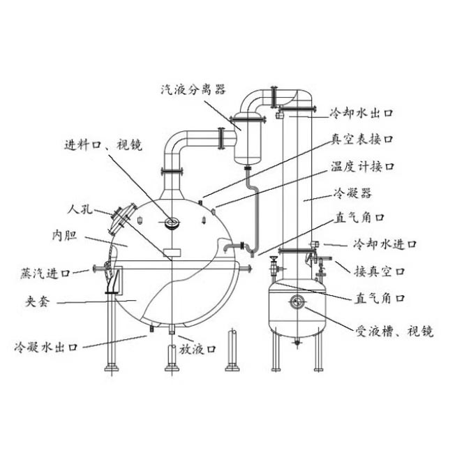 球形濃縮罐主要由濃縮罐主體、冷凝器、氣液分離器、受液桶四個(gè)部分組成,可用于制藥、食品、化工等行業(yè)對(duì)料液的濃縮、蒸溜及有機(jī)溶