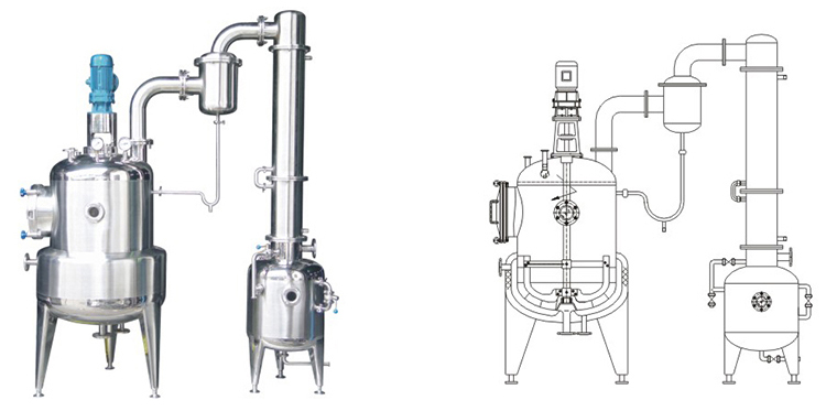 產過程符合藥品生產 GMP 質量標準。攪拌蒸發,濃縮效果好,適用于高粘度狀態物料的傳熱蒸發濃縮。